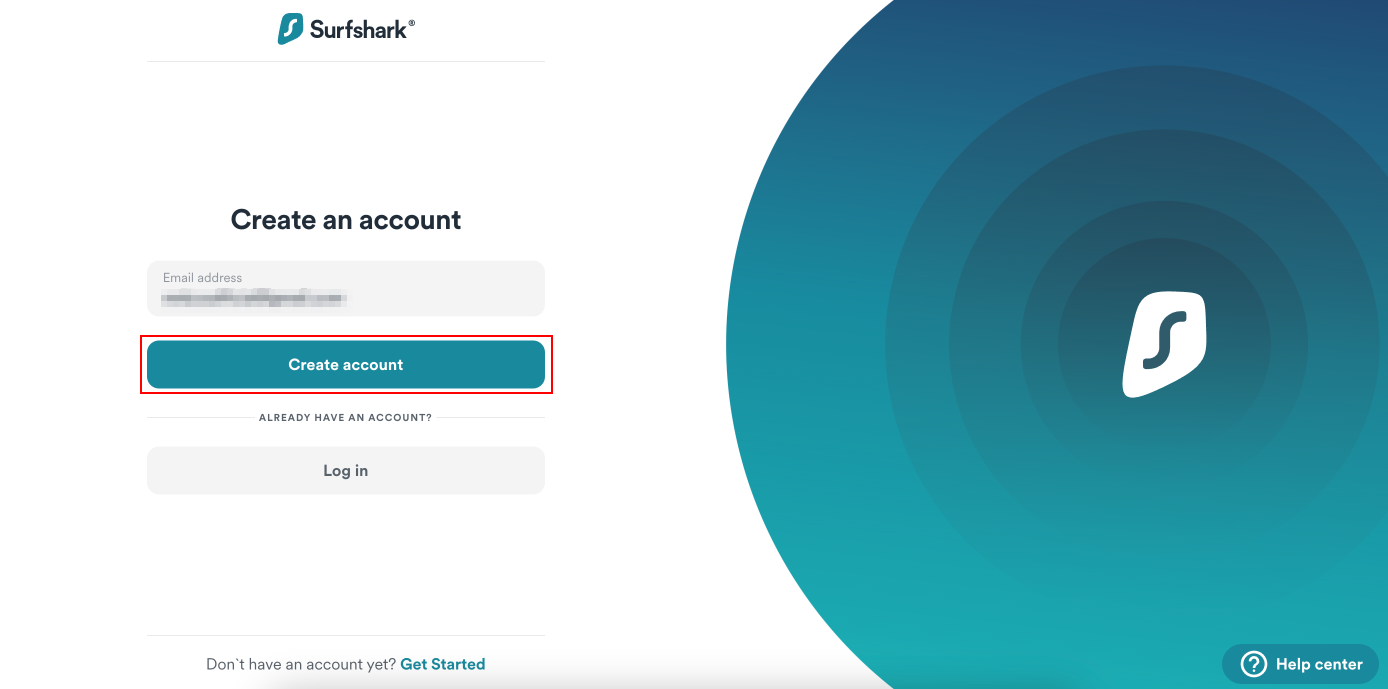 - Once you log into your Google account, you will be taken back to the Surfshark page to confirm the email address. If you have chosen the correct email, click on Create Account.