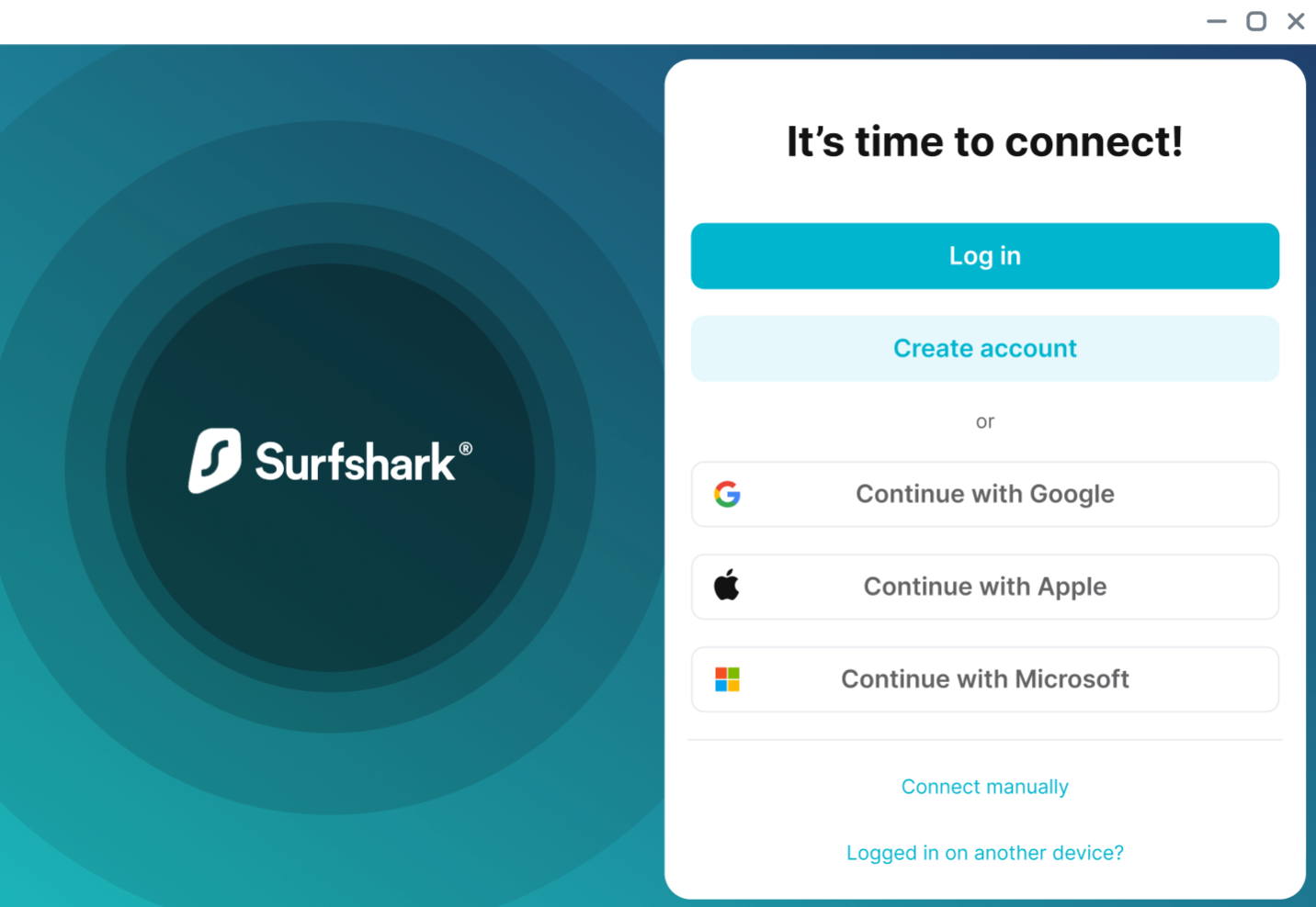 - Once you select your preferred method, you will be redirected to either Google or Apple websites for logging in. After logging in, open the Surfshark application once more.