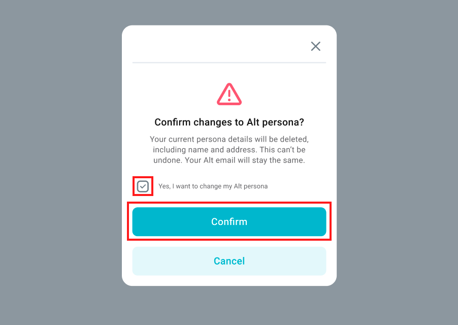 - Tick the box Yes, I want to change my Alt persona and click Confirm.