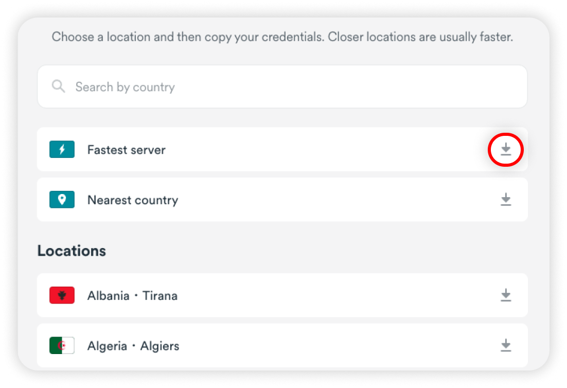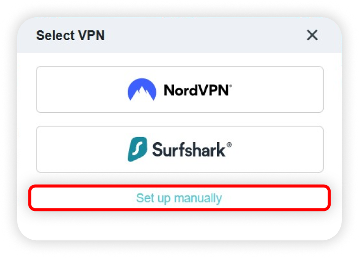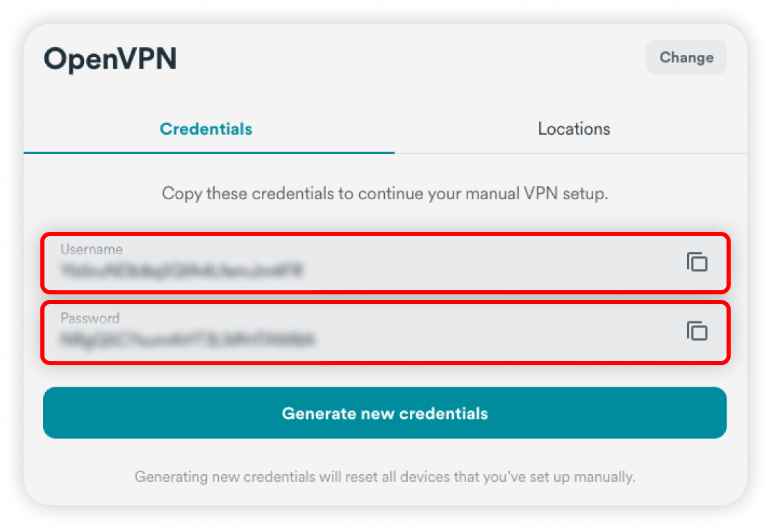 Before setting up OpenVPN, you will need to obtain the credentials for the manual setup and select a server to connect to.
