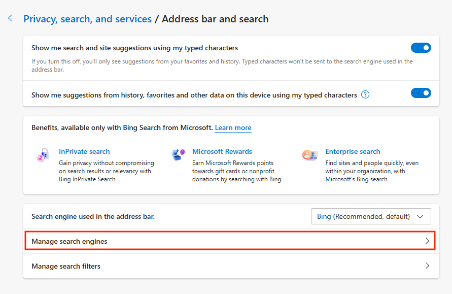 - Select Manage search engines.