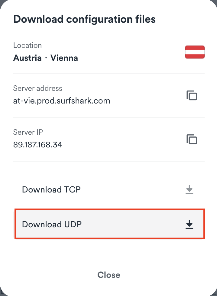 - Press on Download UDP or Download TCP depending on which protocol you'd like to use.