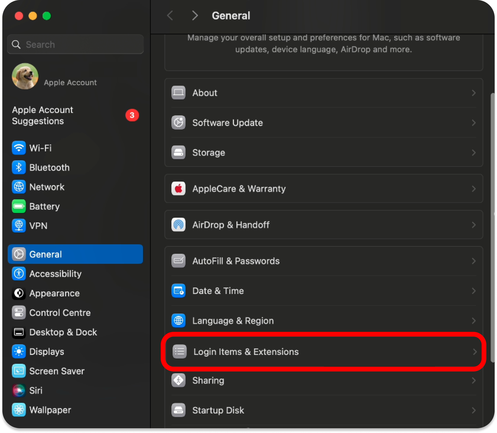 - Select Login Items and Extensions.