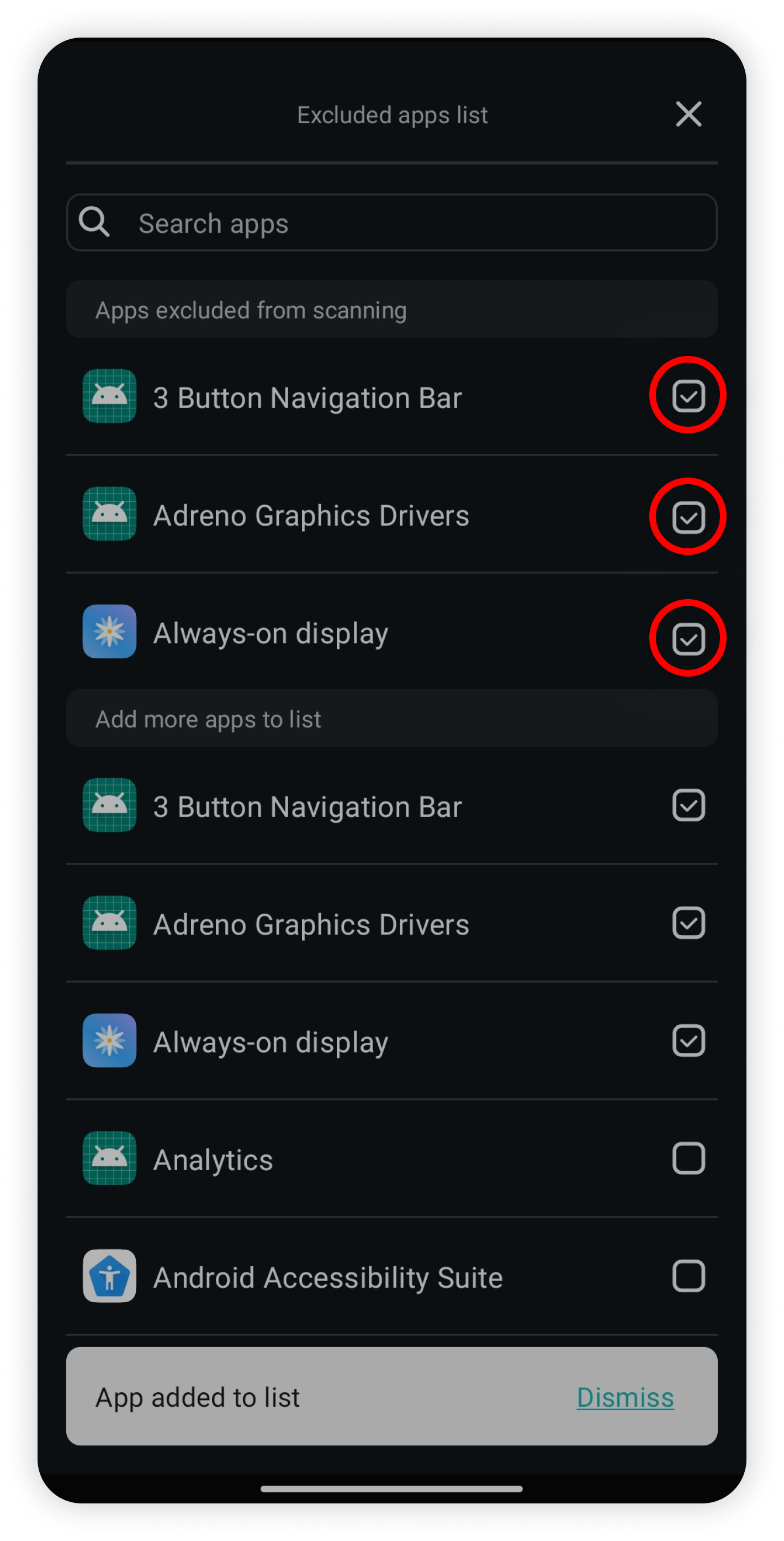 If Surfshark Antivirus is blocking a legitimate application or feature, adding it to the exclusion list can help resolve the issue. Exclusions allow trusted apps or files to run on your device without interference. To add an exclusion in Surfshark Antivirus on an Android device, follow the steps below: