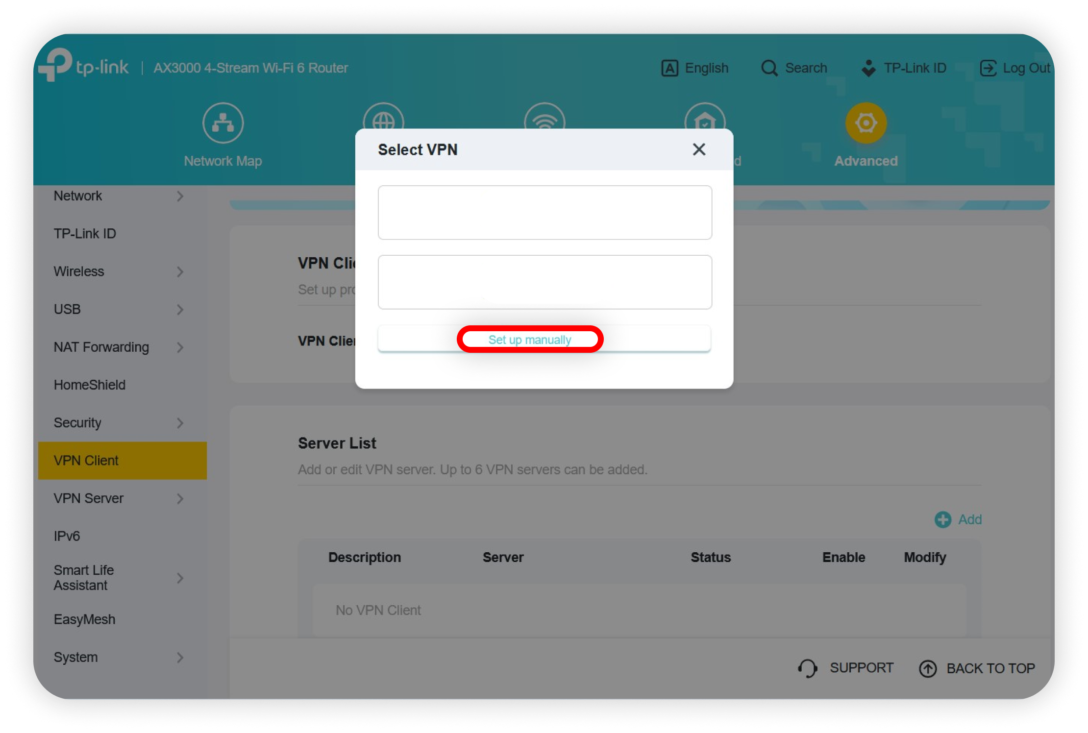 Select set up manually.