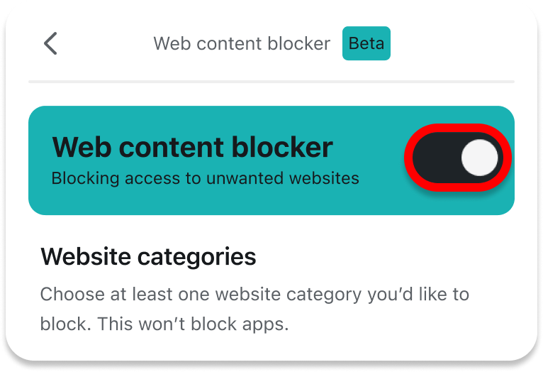 NOTE: As long as the web content blocker feature is on, you cannot access any of the website categories you selected to block.
