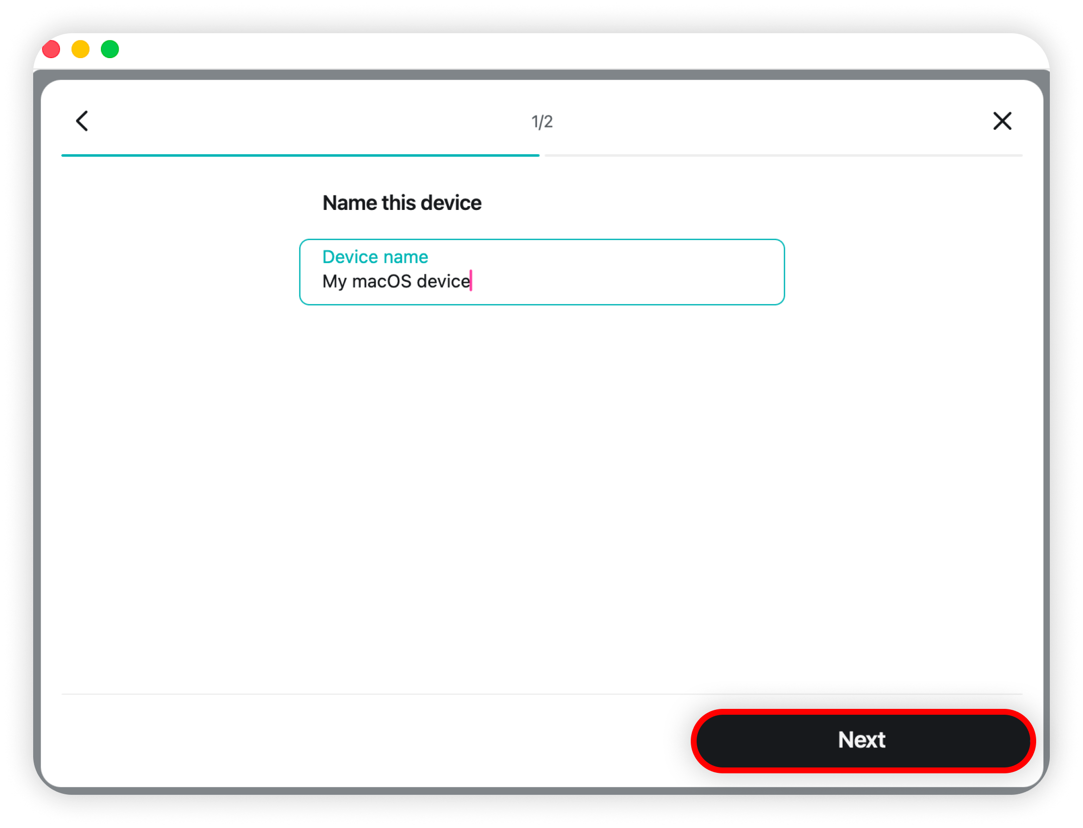 4. Type in the name of the device and click Next:
