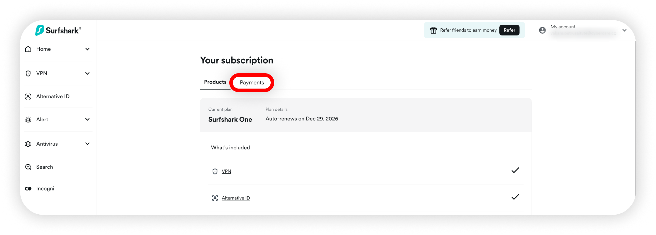 NOTE: Cancelling your subscription's auto-renewal does not automatically grant a refund – it stops your subscription's auto-renewal and recurring payments. If you purchased our services within the last 30 days and wish to receive a refund, please refer to our article on Surfshark refund policy.