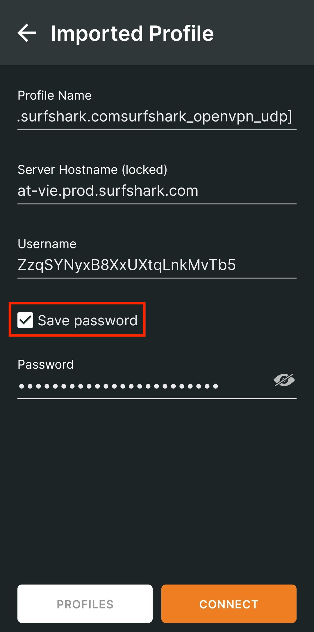 NOTE: make sure to tap on Save password.Profile name: Use any name