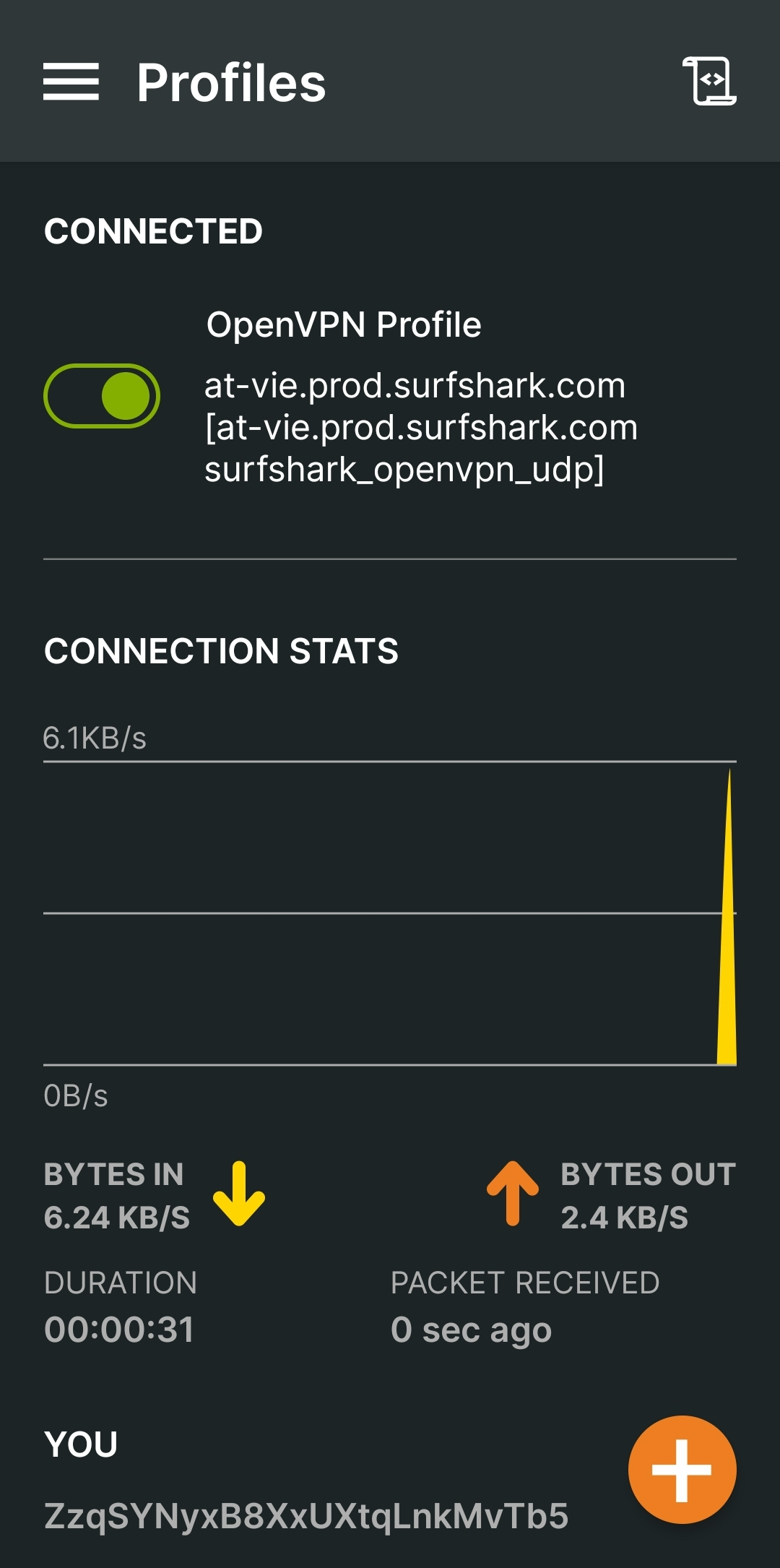 It shows that you're connected, as well as some details about the connection. - To disconnect from the VPN, tap on the switch (which is green now). As soon as you disconnect, the switch will turn gray.