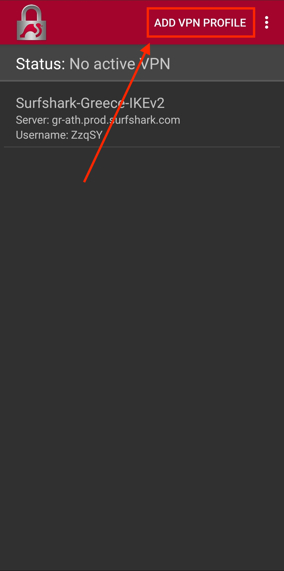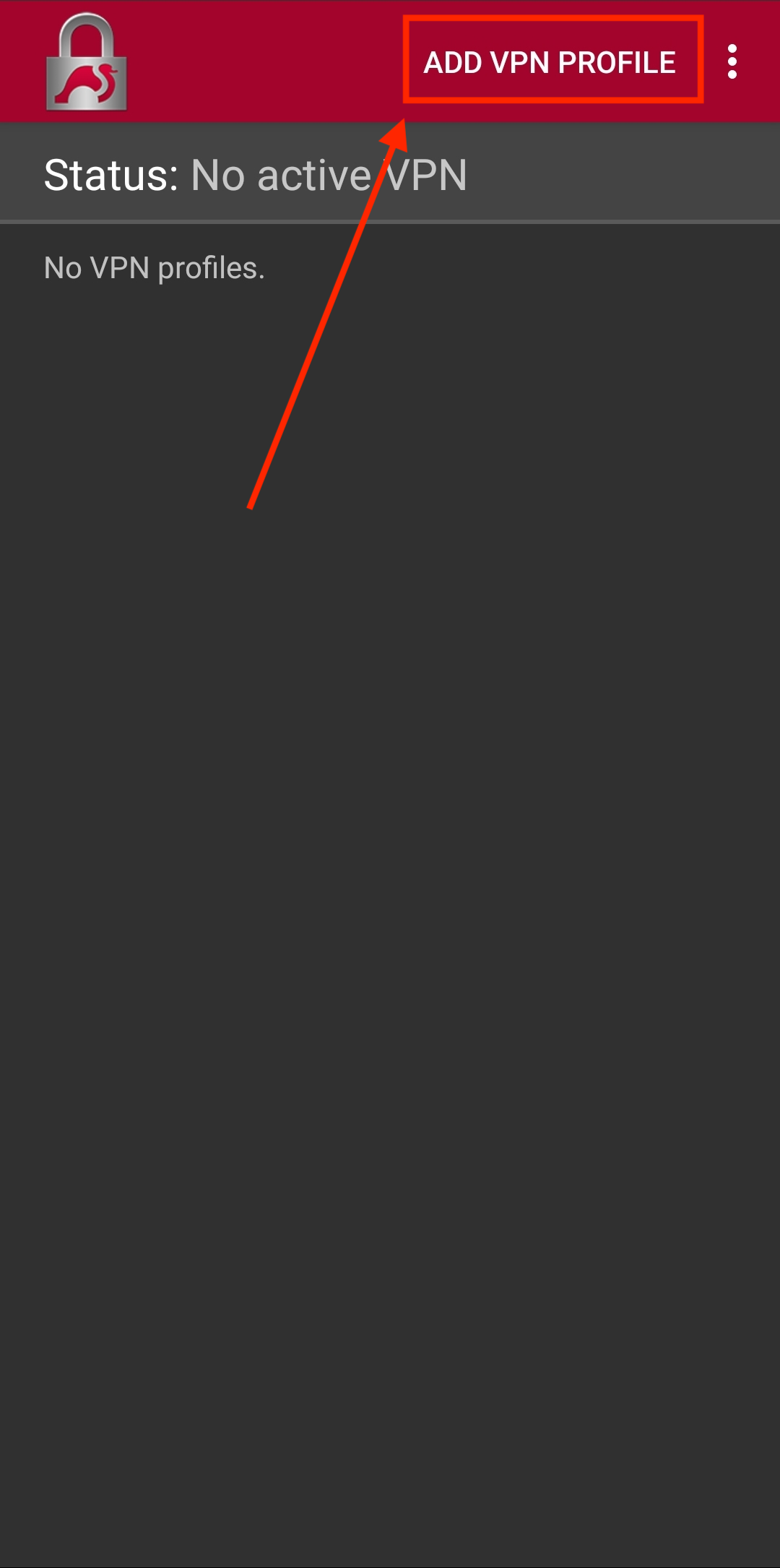 8. Once you are back on the main screen, tap on the Add VPN profile button located in the top-right corner.