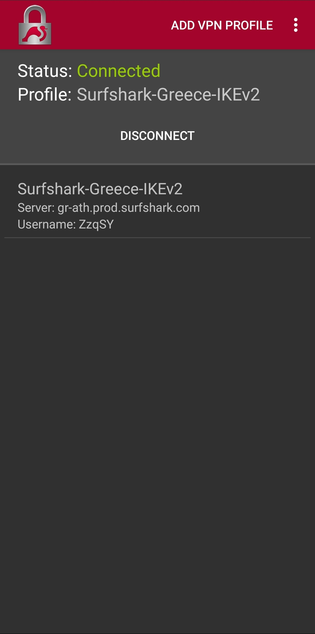 13. To disconnect, tap the Disconnect button right below the status bar.