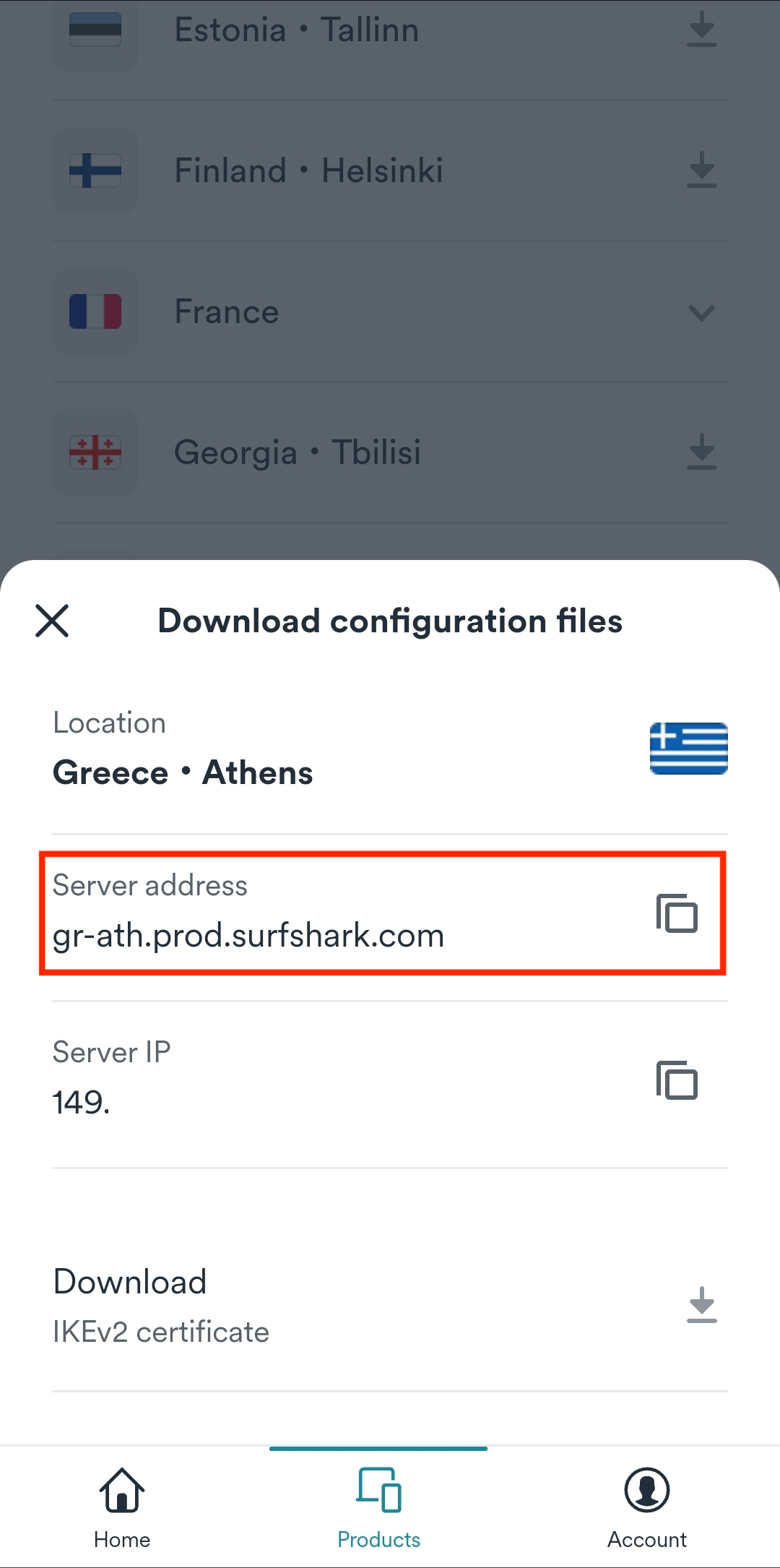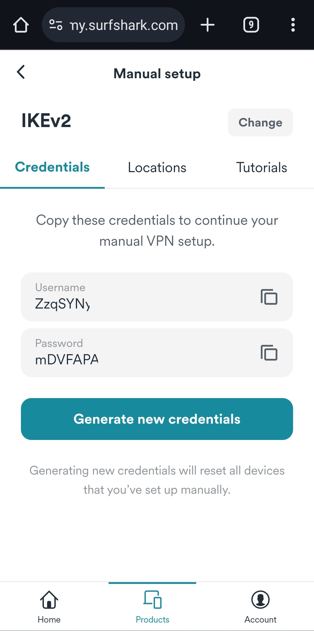 1. Go to the Surfshark login page and log in. Tap on Produtcs > VPN > Manual setup > Desktop or mobile > IKEv2