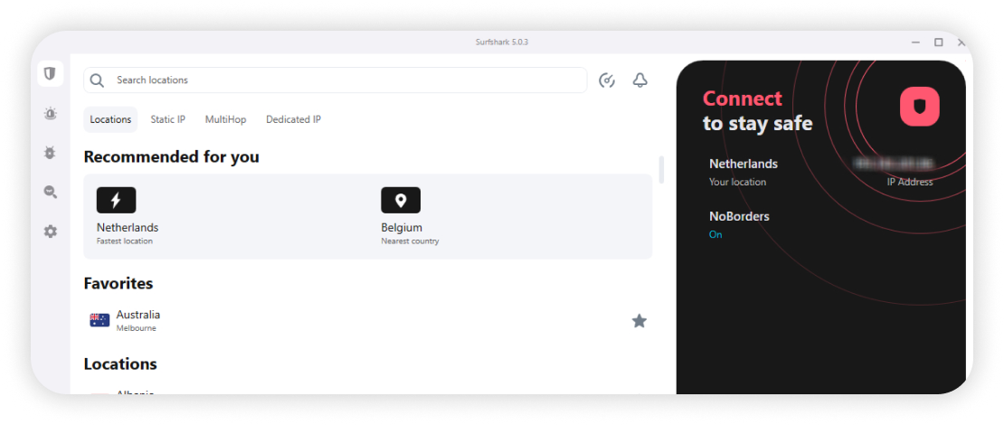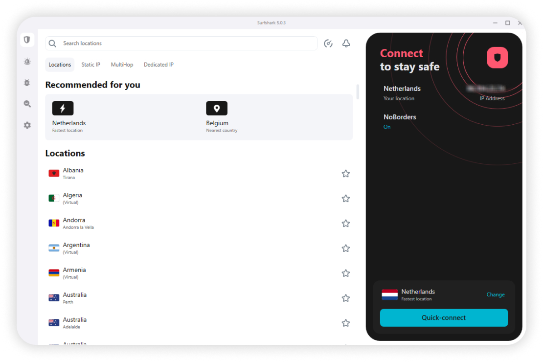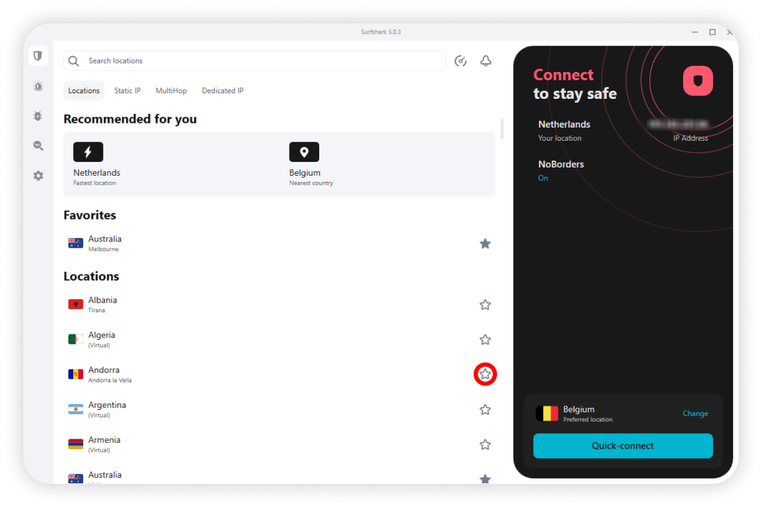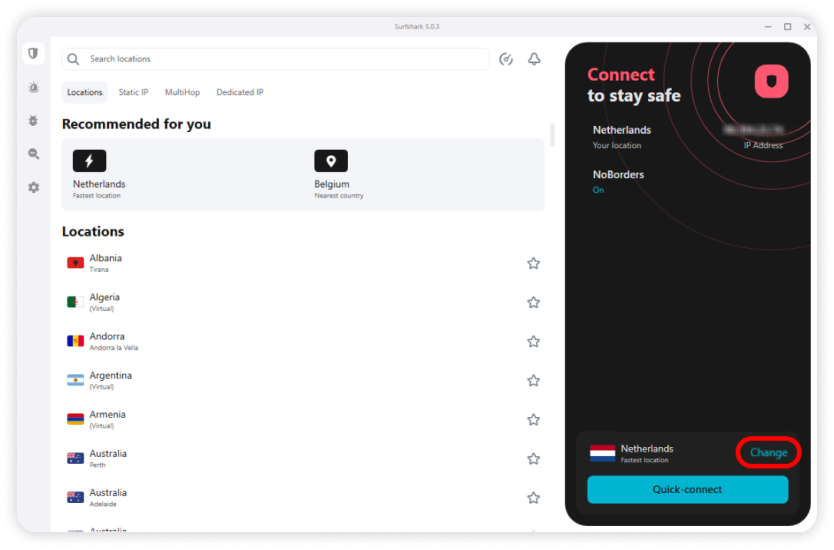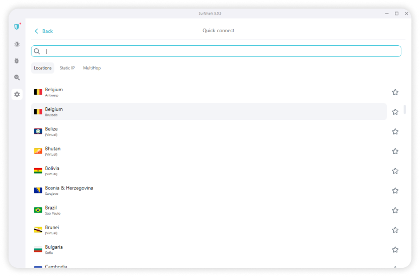 Surfshark has 4500+ servers in 100 countries. Choose a server, click on it, and that's it.