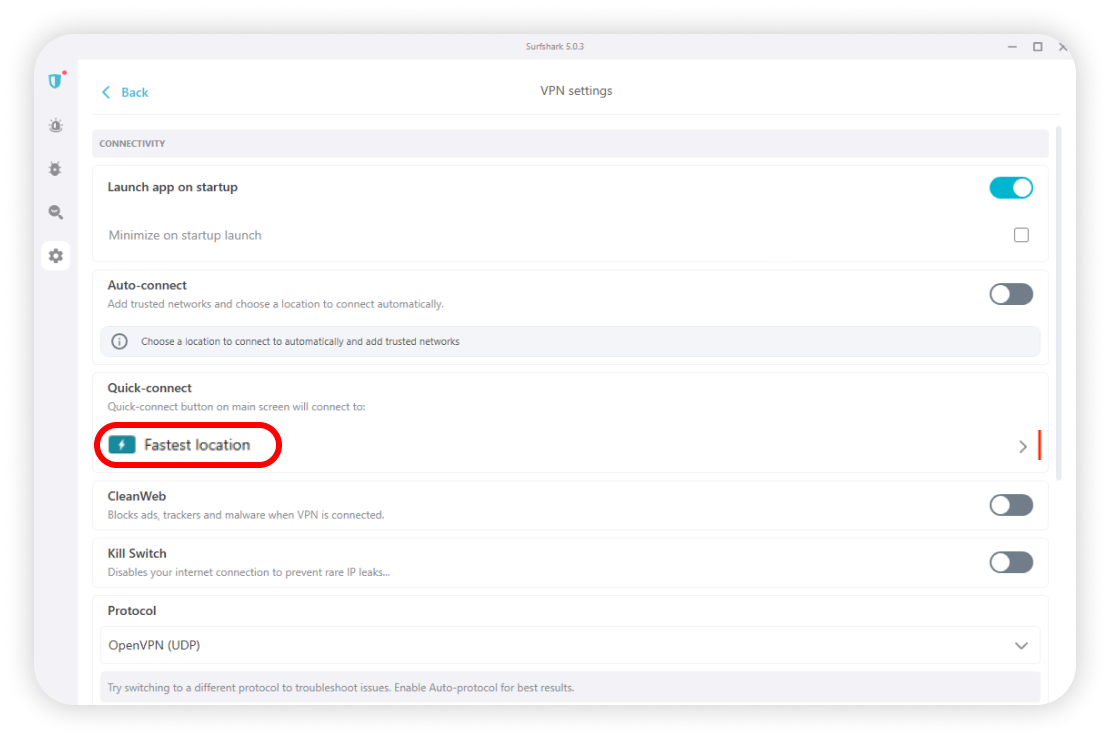 - Enable Launch app on startup. The Surfshark app will launch whenever you turn on your computer.