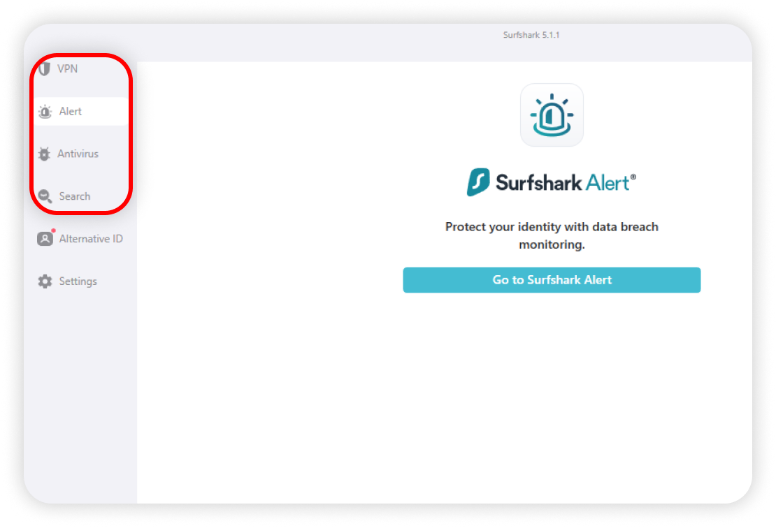 On the left side of the app, you can see 4 additional Surfshark features. You must have an active Surfshark ONE subscription to use them: