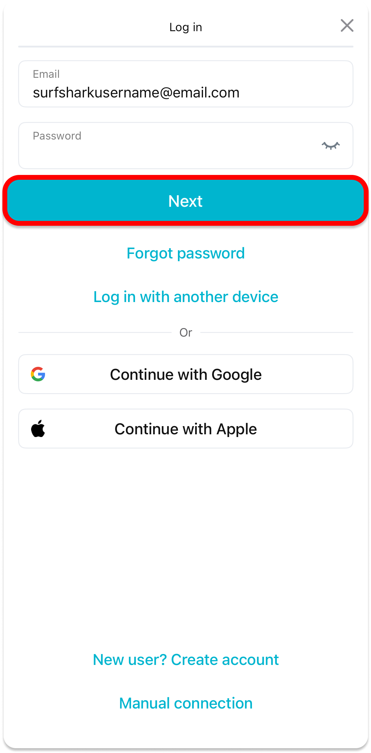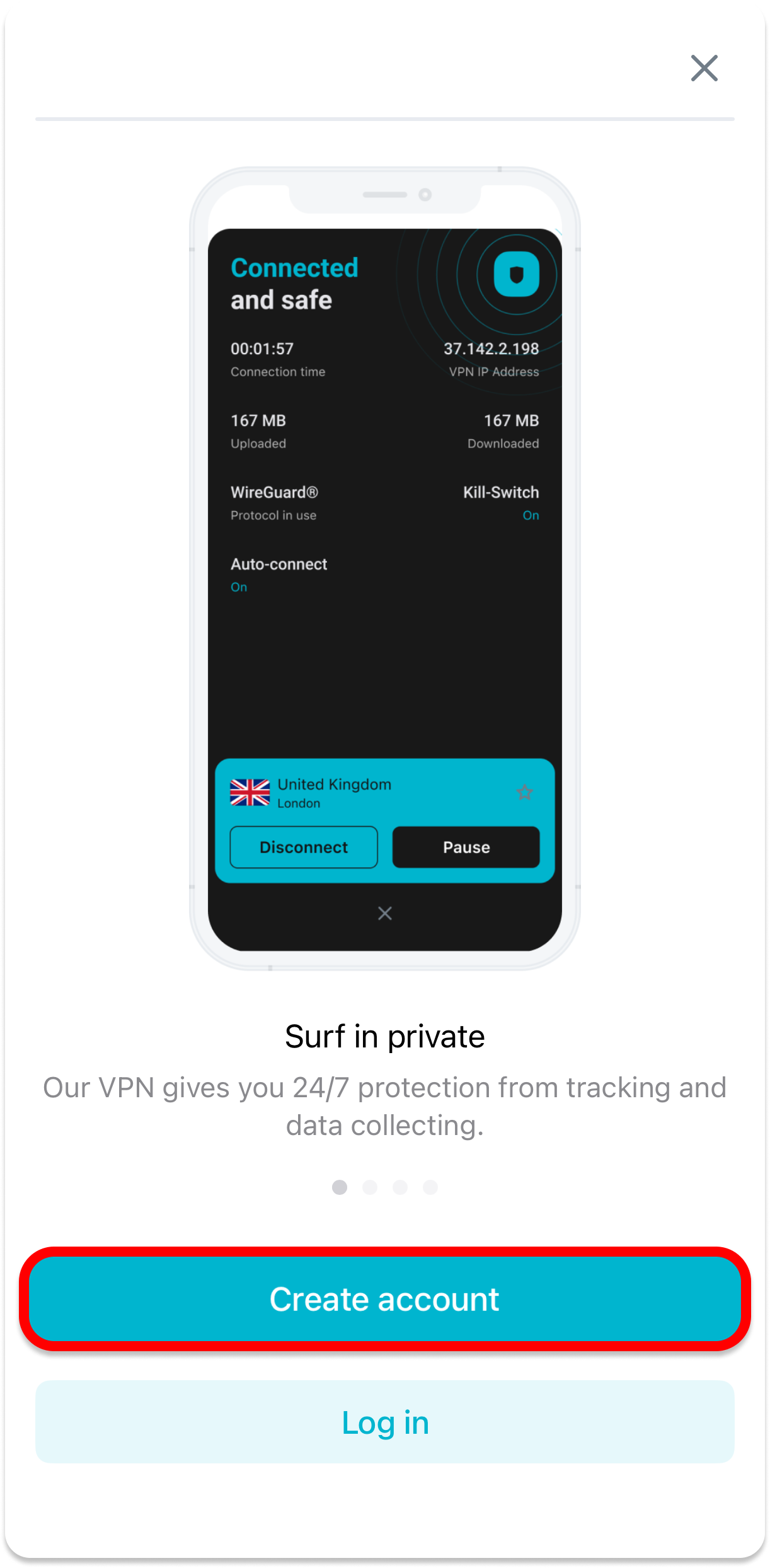 Connect to one of Surfshark's servers. You can simply tap the quick-connect button, and the app will connect you to the fastest server available: