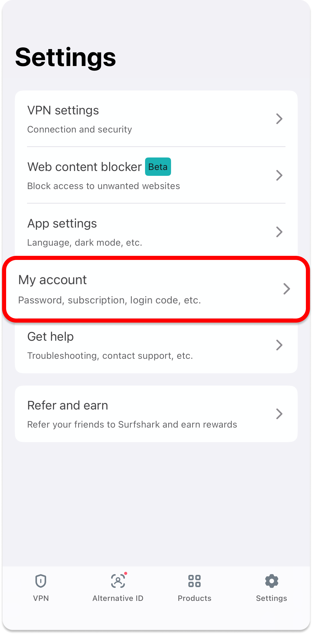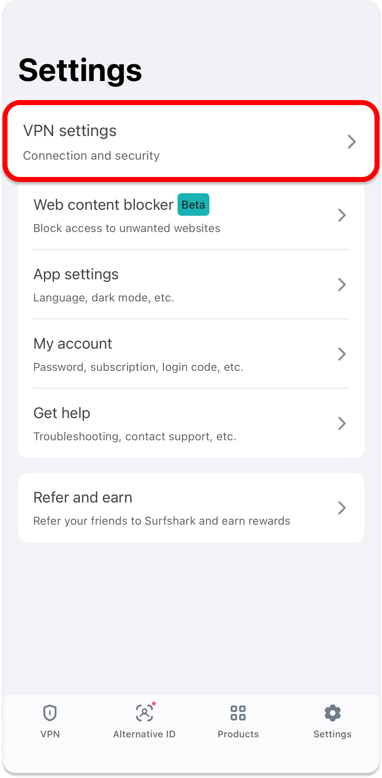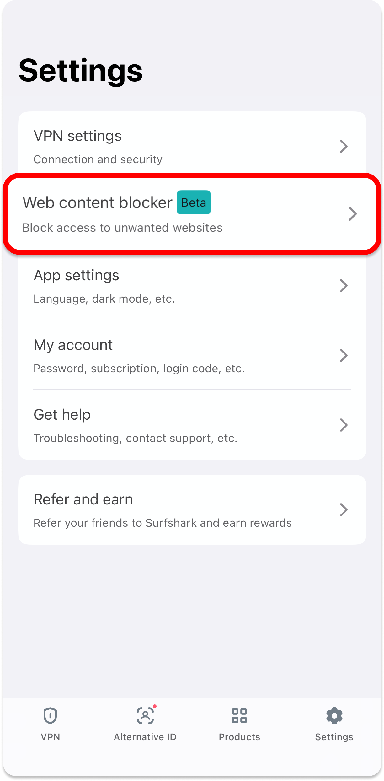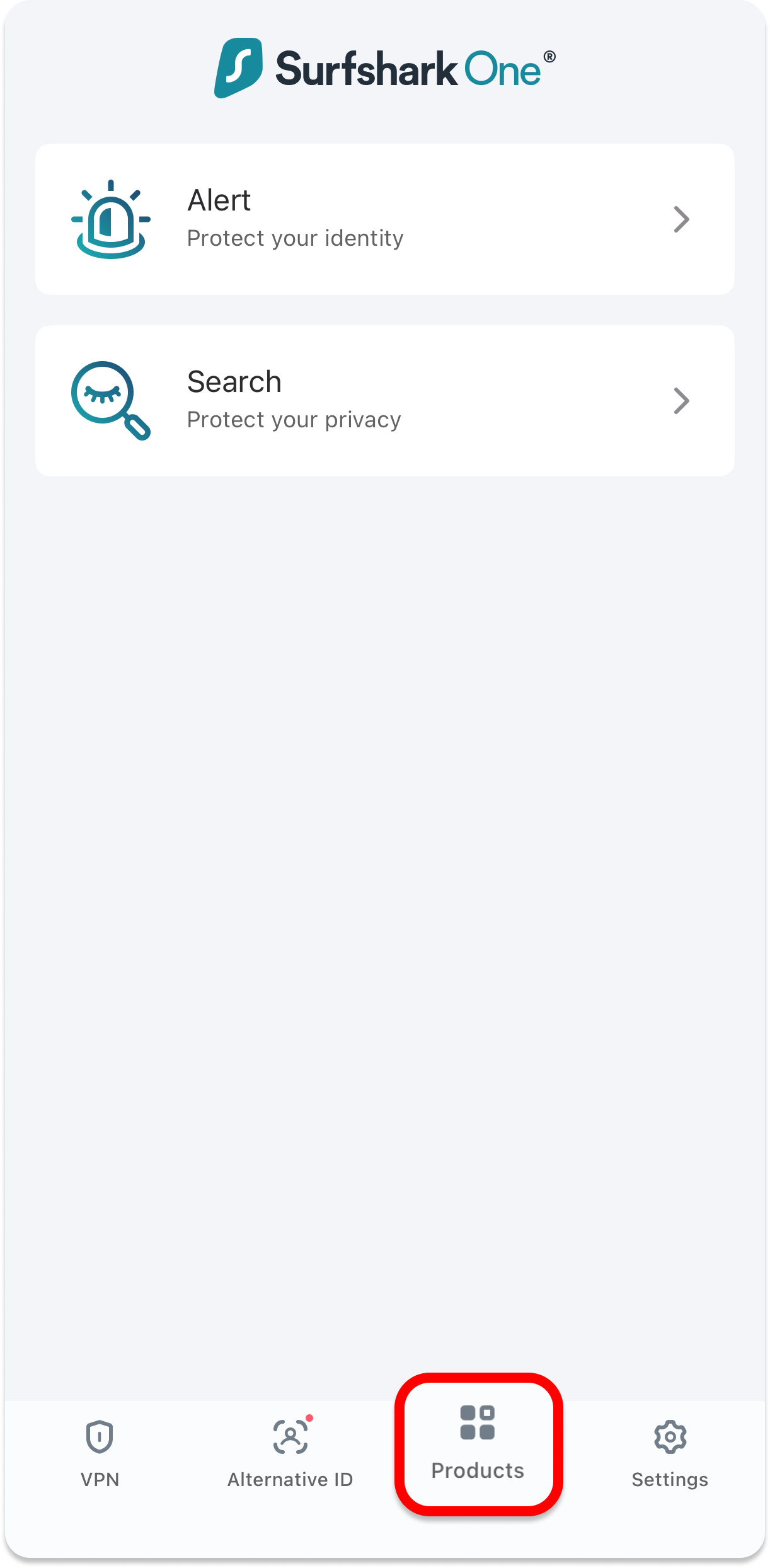 Open the Products tab in your Surfshark app, where you will find two Surfshark products. To use them, you have to have an active Surfshark ONE subscription: