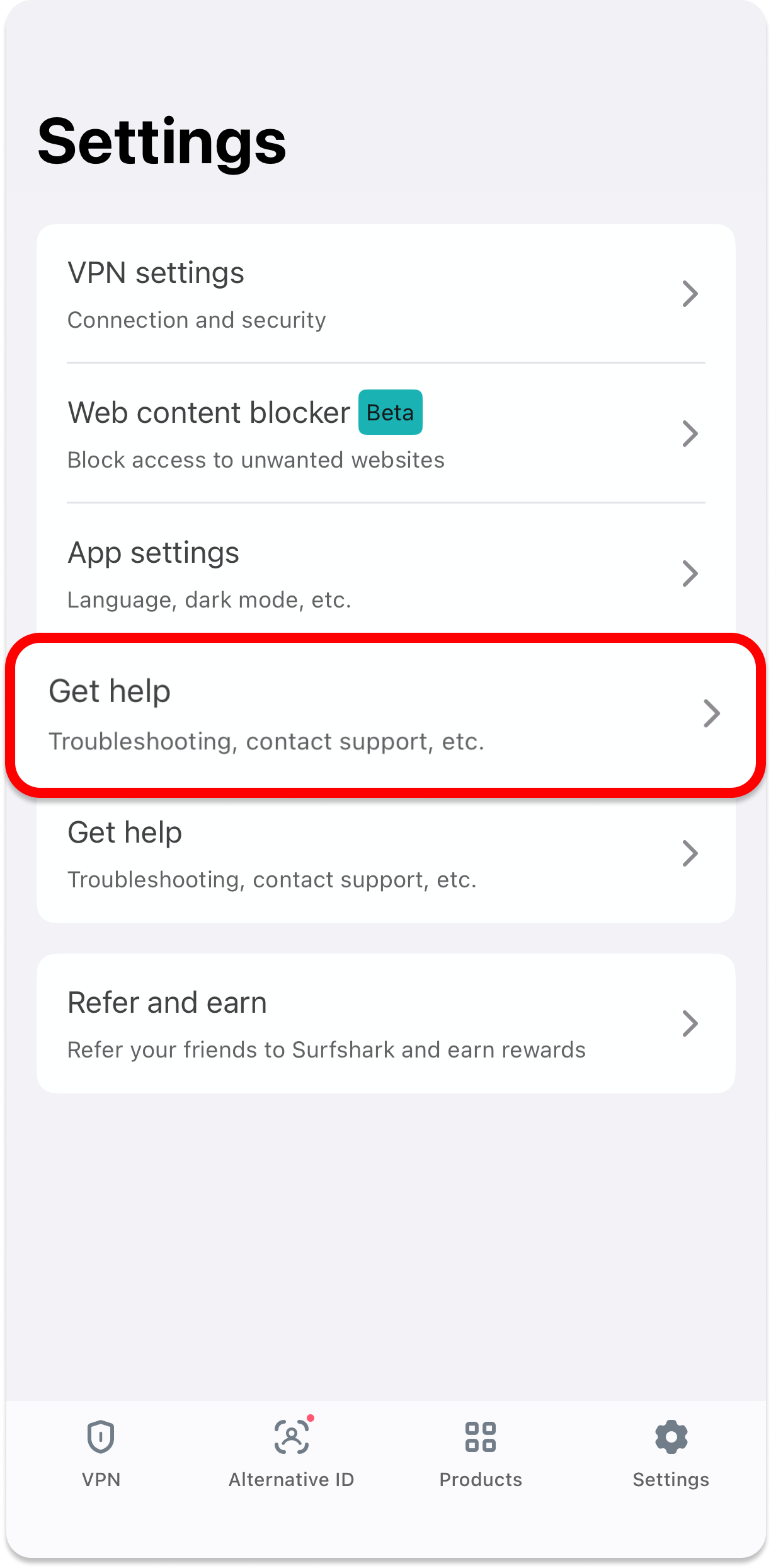 Refer and earn allows you to get free months of Surfshark and more by recommending it to your friends. Open it to get a unique link to share or find the rewards.