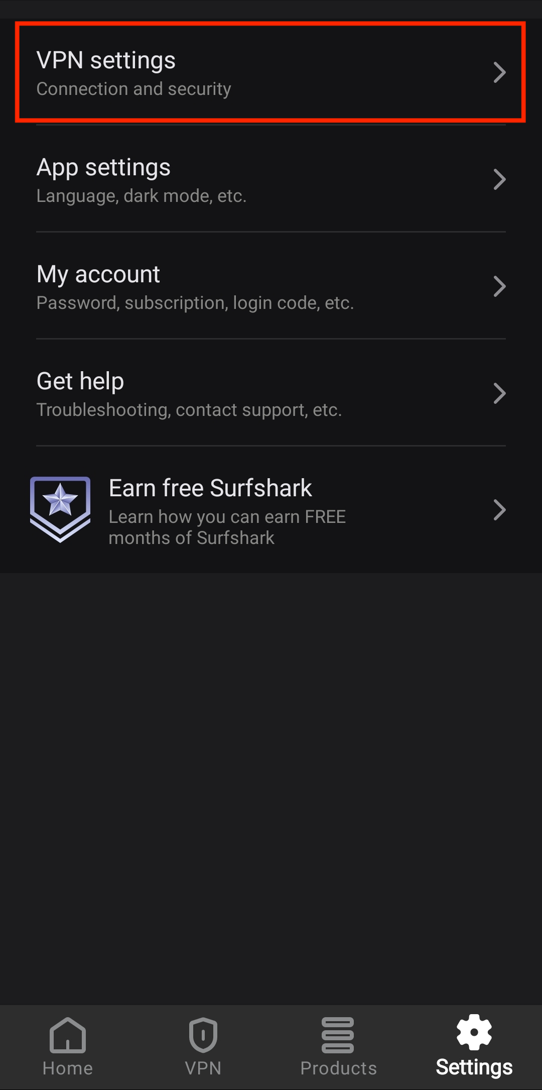 - Open the Surfshark app and tap on Settings.