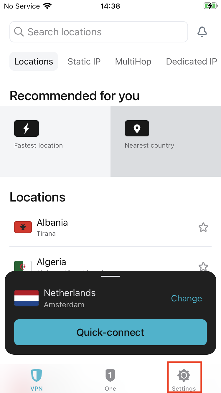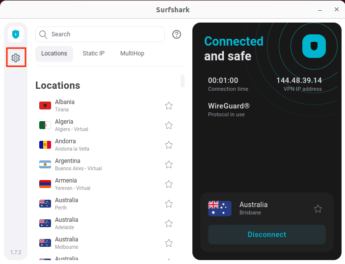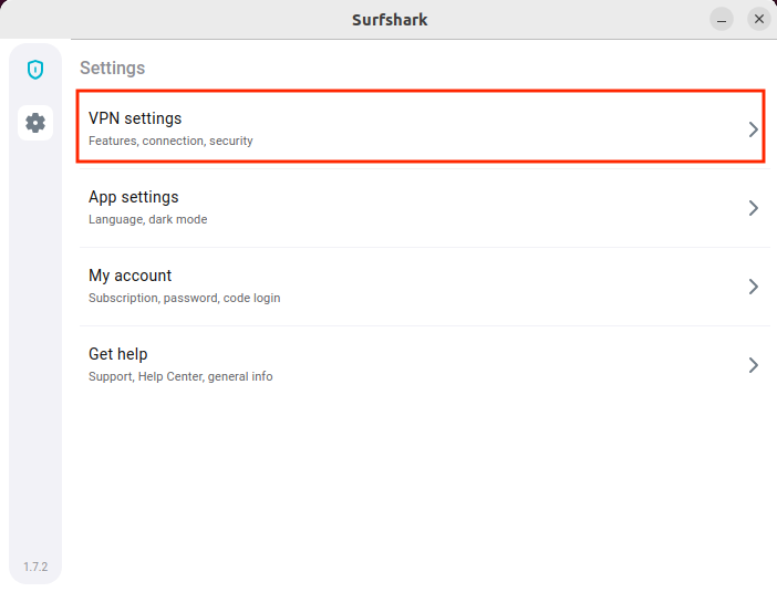 - Open the Surfshark app and select Settings.