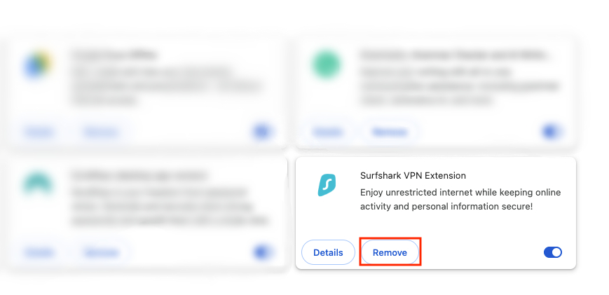 - Find the Surfshark extension, and select Remove.