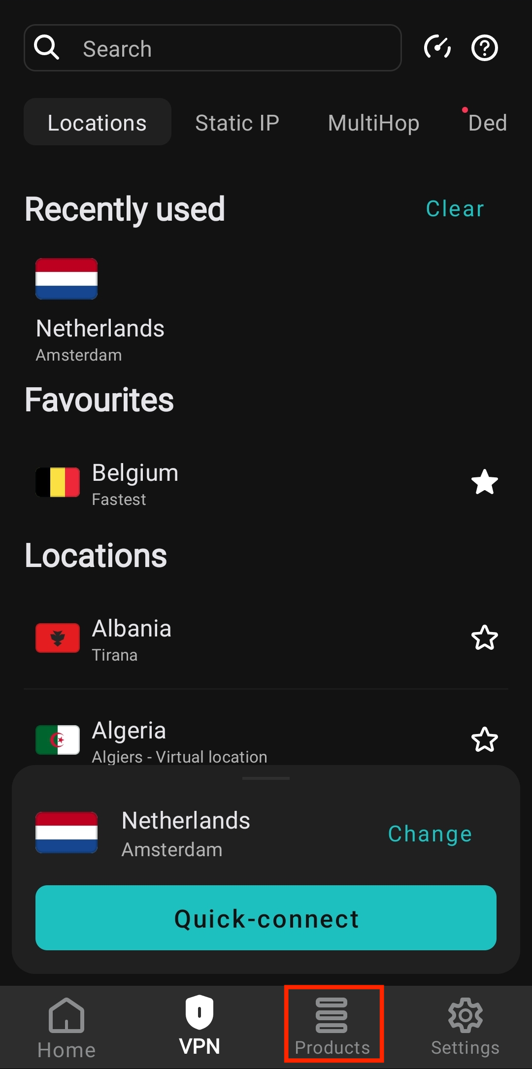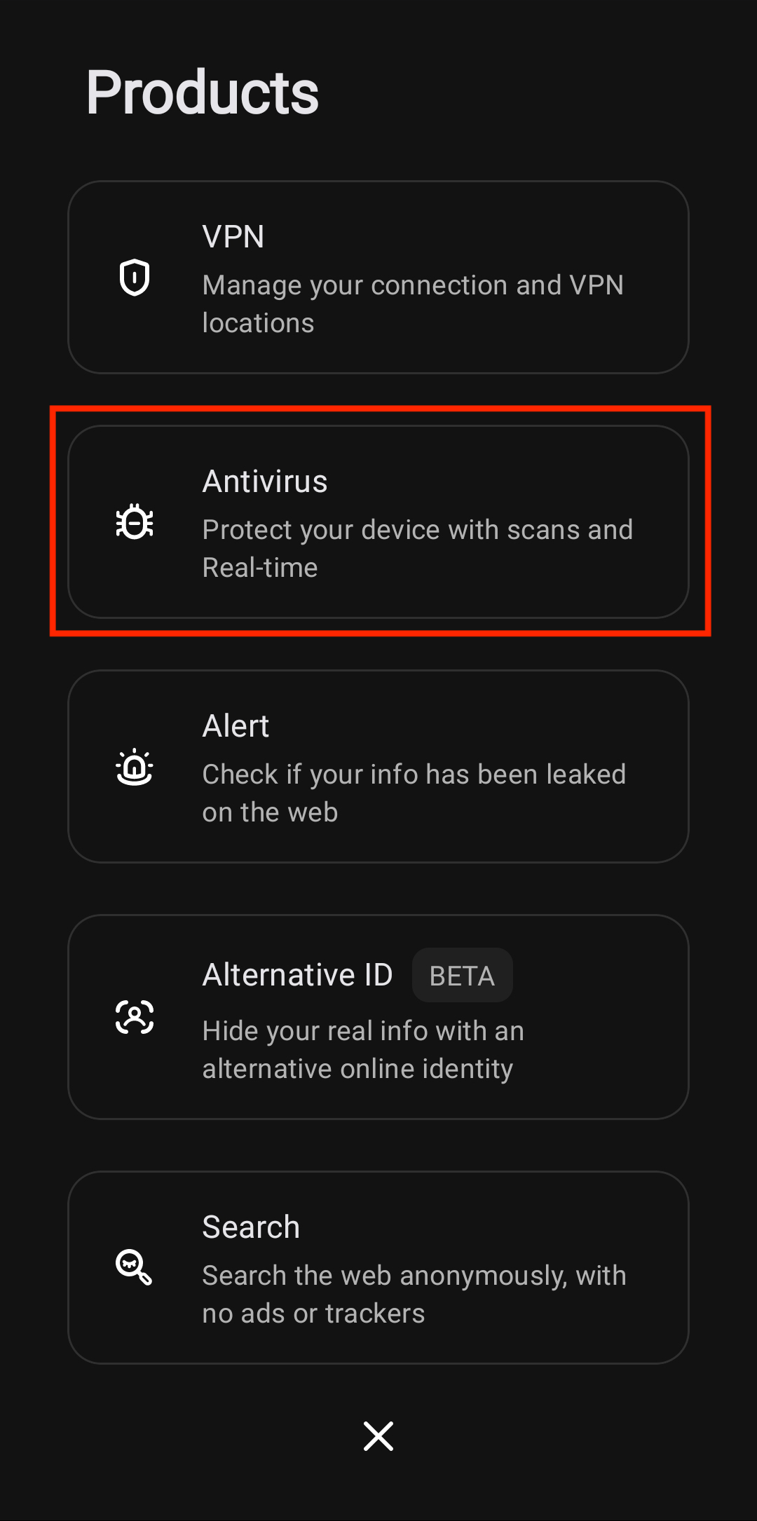 Open the Surfshark application and tap Products.