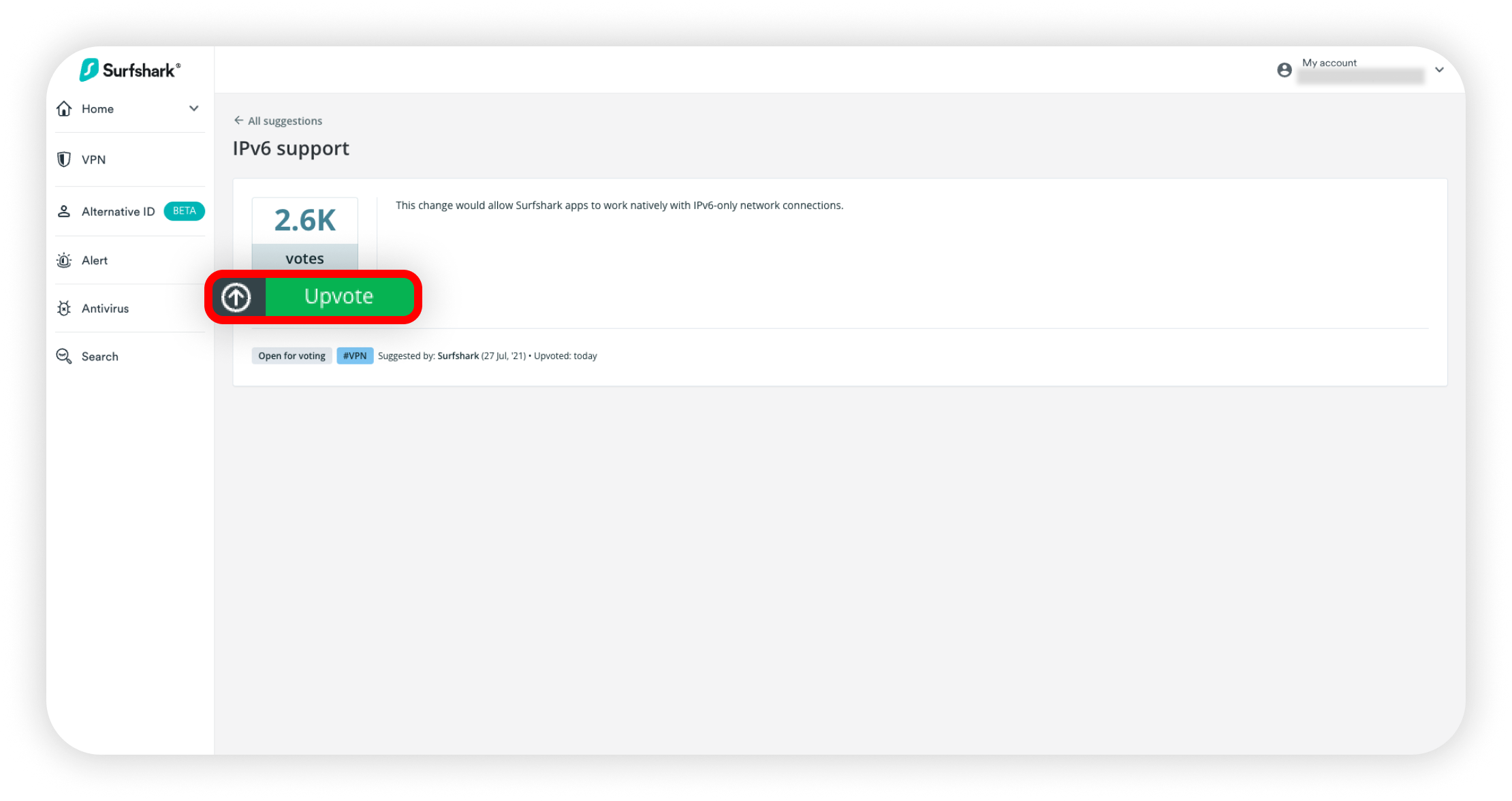 If you find an idea you want to support, click on the title. The Surfshark web page will now take you to the suggestions page.